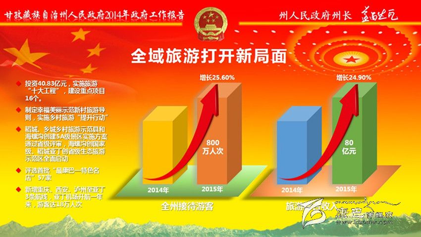2015年是實施“十二五”規(guī)劃的收官之年,是承接“十三五”規(guī)劃的奠基之年,是全面深化改革的攻堅之年,是落實政府“1+8”文件的關(guān)鍵之年。政府工作的總體要求是:以黨的十八大和十八屆三中、四中全會精神為指引,貫徹落實州委十屆六次全委(擴大)會議精神,堅持“統(tǒng)籌聯(lián)動、穩(wěn)中求進、加快發(fā)展”工作基調(diào),以全域旅游統(tǒng)領(lǐng)經(jīng)濟社會發(fā)展,以民生改善凝聚民心民力,以災后重建塑造美好家園,以依法治州促進穩(wěn)定和諧,推動經(jīng)濟社會持續(xù)健康發(fā)展。