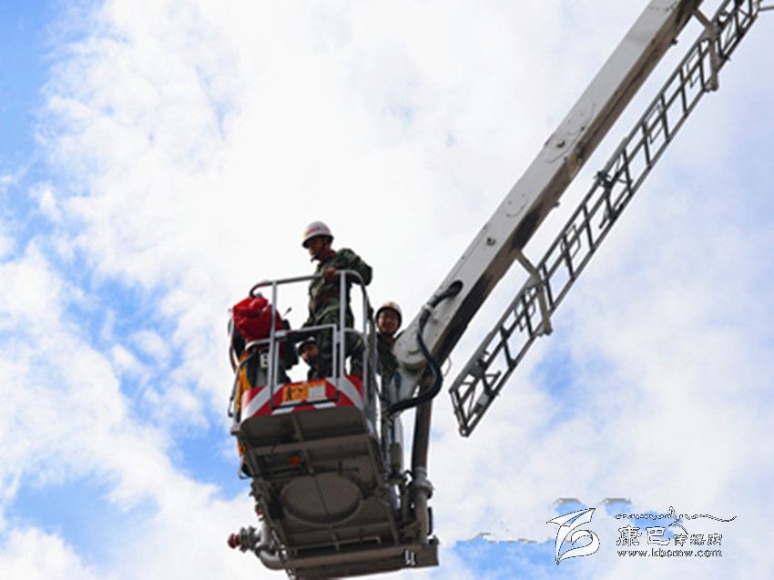 體驗登高。DG-32C登高平臺消防車性能測試和維護保養(yǎng)工作完成后,在甘孜消防支隊司令部參謀長劉乾德和一名登高車駕駛員帶領下筆者親身體驗了一次登高作業(yè)。按照操作規(guī)程,戴好防護頭盔,扎上綁有安全繩的防護腰帶,登高平臺臂正式啟動。駕駛員操作技術十分嫻熟,40秒后,登高平臺穩(wěn)穩(wěn)的停在了28米的高空。站在平臺上俯瞰著下方,一陣清風刮過,平臺出現(xiàn)了輕微搖晃,當時筆者十分緊張,手掌緊緊抓住了平臺上的防護欄。“高空作業(yè)出現(xiàn)這種情況屬于正?,F(xiàn)象,心里一定要平靜,要相信消防員的專業(yè)技術,也要相信消防裝備的安全系數(shù)”駕駛員對筆者說道。隨即,在駕駛員的操作下,平臺緩緩下降至地面,筆者頓時松了口氣,并向操作登高平臺臂的駕駛員表示剛才感覺十分驚險。當?shù)弥{駛員對DG-32C登高平臺消防車經過專業(yè)的技術培訓,并具有3年多的駕駛及操作經驗時,筆者頓時心生敬畏。