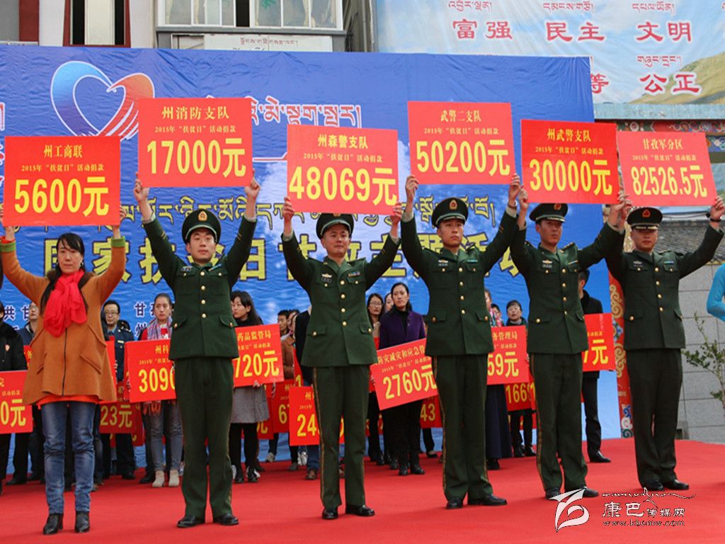 本網(wǎng)訊(周燕 文/圖)10月17日下午,由康定市部門機(jī)關(guān)單位、駐康部隊、僧尼代表、援藏干部、民營企業(yè)等組成的11個方隊共計300余人在該市市委綜合樓廣場開展了以“奉獻(xiàn)愛心、點燃希望”為主題的“扶貧日”募捐活動,活動現(xiàn)場共募捐了42.2699萬元善款。