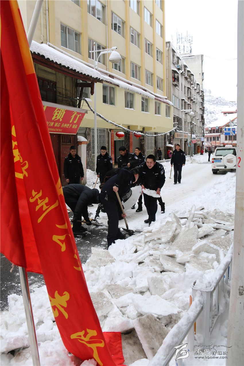 州公安局共產(chǎn)黨突擊隊正在東大街除雪。