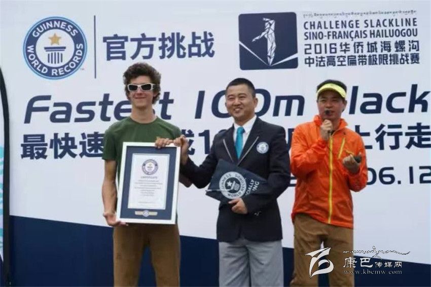 6月11日“2016華僑城海螺溝高空扁帶極限挑戰(zhàn)賽”上,法國(guó)選手Nathan Paulin以零失誤的成績(jī)成功完成了海拔3600米、長(zhǎng)度820米高空扁帶極限挑戰(zhàn),完成了一次驚艷視覺(jué)、顛覆想象、燃爆心跳的極限之旅,創(chuàng)造了世界最高海拔,最長(zhǎng)距離的高空扁帶運(yùn)動(dòng)的東方奇跡,被譽(yù)為“北緯30°的云端行走”。次日,法國(guó)選手Lucas Milliard在海螺溝大橋下以1分59秒73的成績(jī)創(chuàng)造了最快速度完成100米扁帶上行走吉尼斯世界紀(jì)錄,成為這項(xiàng)吉尼斯世界紀(jì)錄的締造者。從此,他的名字隨著中國(guó)四川甘孜海螺溝一起被整個(gè)世界所記錄。