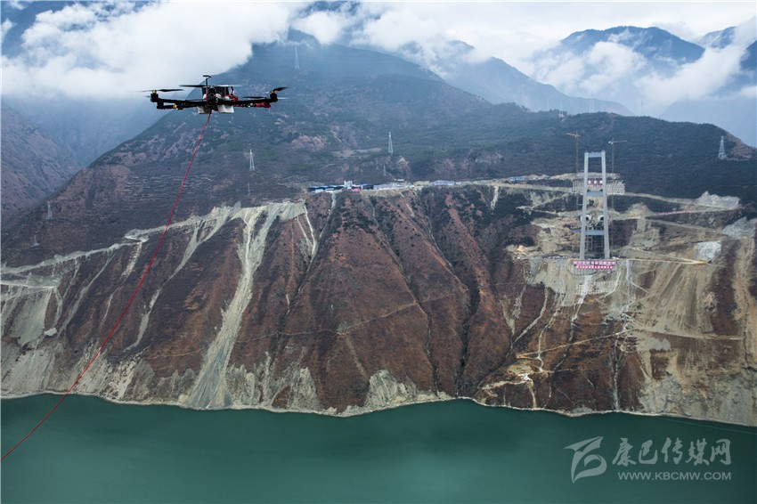雅康高速C15合同段一分部總工程師張磊說,河谷兩岸立好橋墩,施工隊員運用無人機技術(shù),先把一根較細的繩子“飛穿”在兩側(cè)橋墩,再運用這第一根繩索,運送較粗繩索,最后運送鋼繩,建立橫跨兩岸的1600多米長的“貓道”——施工隊員屆時彎腰在這里施工?!肮と藨以诤拥郎峡帐┕?,也會被無處不在的大風(fēng)所包圍?!?/span>