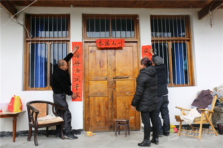 本網訊(賴天 文/圖)22日中午,老陳吃完午飯,就急急忙忙將早已準備好的春聯(lián)拿了出來,用糨糊刷在門框上,然后小心地開始貼春聯(lián)。“右邊那聯(lián)往下點,有點偏高。”老陳的妻子在門前面指揮著,他們的小孫子也興致勃勃地跑來給爺爺幫忙。