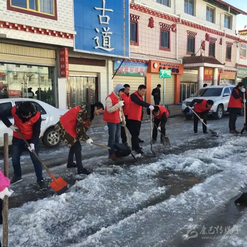 石渠志愿者清除街道積雪。