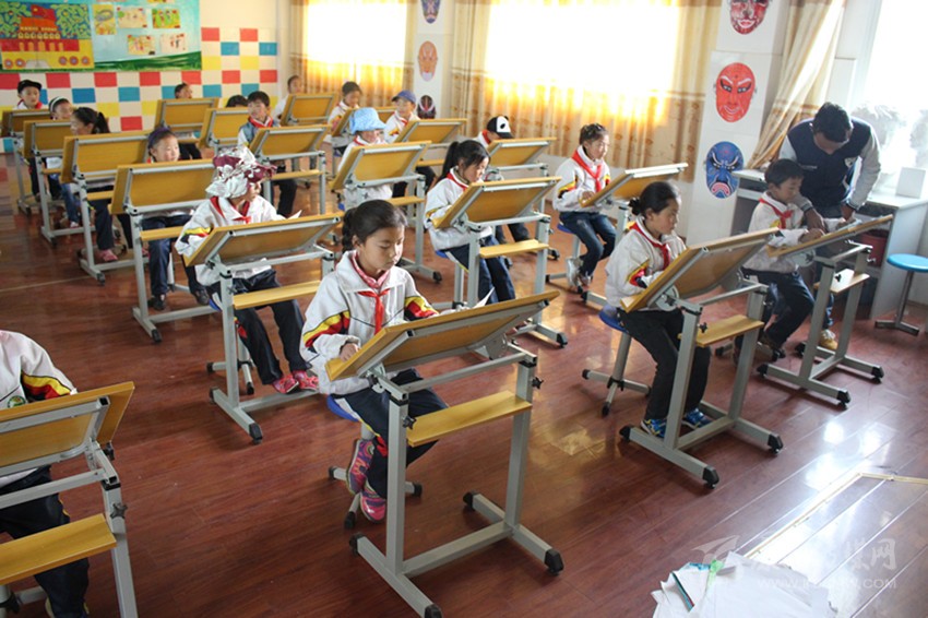 色達小學(xué)生正在上美術(shù)課。