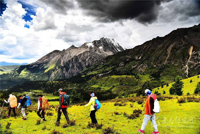 游客徒步格聶神山。