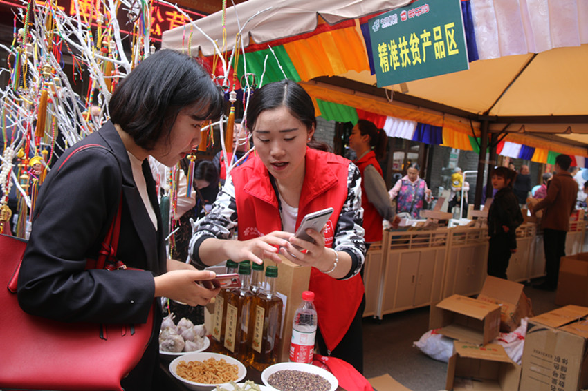電商元素突出,注重電商扶貧是此次展銷活動(dòng)的另一特點(diǎn)。此次展銷活動(dòng)采用了“線上線下互動(dòng)”的模式,既有現(xiàn)場(chǎng)售賣,又有線上體驗(yàn);掃碼關(guān)注店鋪微信公眾號(hào),掃碼進(jìn)入網(wǎng)店頁(yè)面,微信付費(fèi)享受折扣等,顯示電商思維的營(yíng)銷手段層出不窮;各參展商家為推廣自家網(wǎng)點(diǎn)開設(shè)的限時(shí)低價(jià)搶購(gòu)活動(dòng),更引發(fā)數(shù)百名消費(fèi)者爭(zhēng)相參與。而電商扶貧則是此次活動(dòng)的出發(fā)點(diǎn)之一?;顒?dòng)不僅專門設(shè)立有精準(zhǔn)扶貧產(chǎn)品專區(qū),而且以貧困村農(nóng)牧民專業(yè)合作社為主要參展企業(yè)。所有參展企業(yè)均為免費(fèi)入駐參展,活動(dòng)主辦方還盡力保障企業(yè)利潤(rùn)。