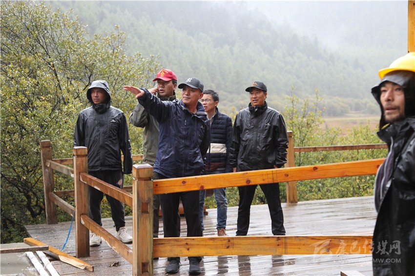 黃曉東(右二前)現(xiàn)場指導(dǎo)景區(qū)建設(shè)。