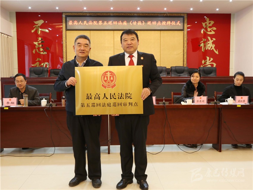 本網訊 11月13日,最高人民法院第五巡回法庭(甘孜)巡回審判點授牌儀式在甘孜州中級人民法院舉行,此次在四川設立兩個巡回點,州中級人民法院是授牌點之一。最高人民法院第五巡回法庭分黨組成員、副庭長汪國獻為該院授牌并在儀式上作講話,甘孜州中級人民法院黨組書記、代理院長付寶接牌并作相關工作匯報。