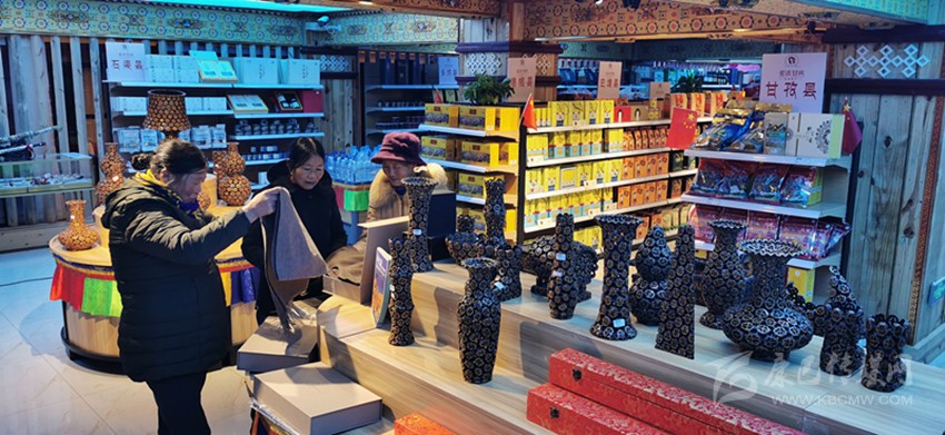 顧客們正在選購(gòu)甘孜特色農(nóng)副產(chǎn)品。