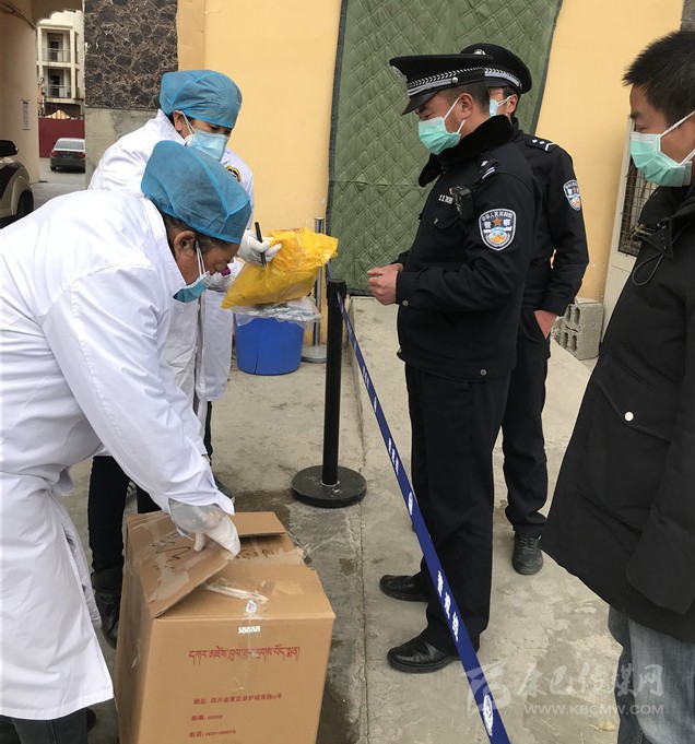 醫(yī)務(wù)人員送防疫藏藥到隔離點(diǎn)。
