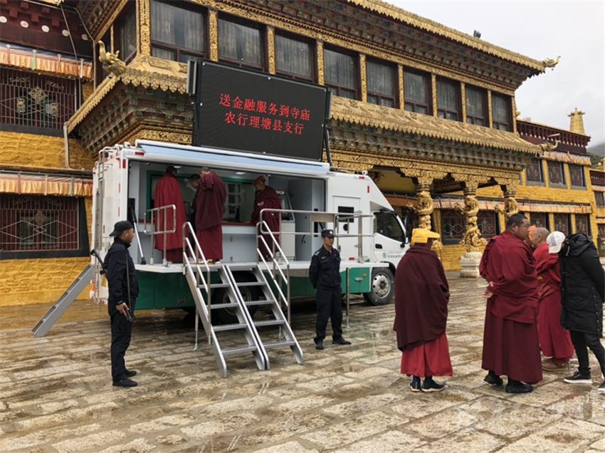 深入寺廟,服務(wù)僧侶“顯真情”。5月23日,理塘縣支行又將流動汽車銀行開往距縣城近100公里的下壩片區(qū),該片區(qū)下轄4個鄉(xiāng)鎮(zhèn)、16個行政村、1座寺廟,先后深入鄉(xiāng)鎮(zhèn)、寺廟開展流動金融服務(wù),累計辦理存取款業(yè)務(wù)12筆、金額25500元,殘損幣兌換200元,辦理開卡3戶、手機(jī)銀行2戶、手機(jī)短信5筆、密碼解鎖2筆、查詢3筆、明細(xì)打印2筆、手機(jī)安全認(rèn)證碼修改3筆。