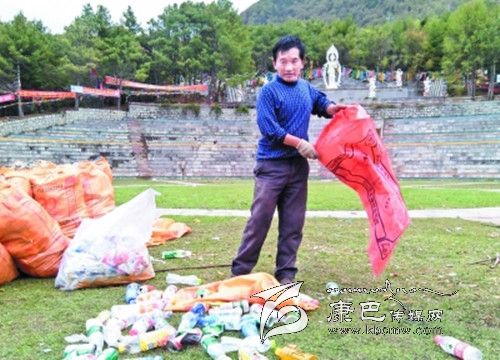 在接受記者采訪時跑馬山旅游開發(fā)有限公司董事長昂洛正在跑馬山跑馬坪和公司員工一同清理垃圾,昂洛說:“對于每年四月八后的‘垃圾’問題我真的很無奈,也很難過。跑馬山的景區(qū)規(guī)模有一定的局限性,每一次接待游客不能超過一萬人,要不硬件設(shè)施設(shè)備、安全隱患,當(dāng)然也包括環(huán)境衛(wèi)生都會出現(xiàn)問題。四月八這一天有一點特殊,這是一個當(dāng)?shù)氐拿褡屣L(fēng)俗節(jié)日,每到這一天都會有很多市民上山祈福,而且景區(qū)當(dāng)日不收門票。據(jù)不完全統(tǒng)計今年陸續(xù)上山的游客達(dá)到了3萬人以上,在某種意義上是超負(fù)荷了。景區(qū)也有載客量,硬件設(shè)施不夠用,也不能完全責(zé)怪游客亂扔垃圾,人多了景區(qū)的垃圾桶自然不夠用。傳統(tǒng)的四月八康定本地居民本來就有野餐的習(xí)慣,這是一種習(xí)俗,我們不能打破。吃東西當(dāng)然就會留下大量的垃圾,不經(jīng)意就會造成垃圾遍地的場面。”