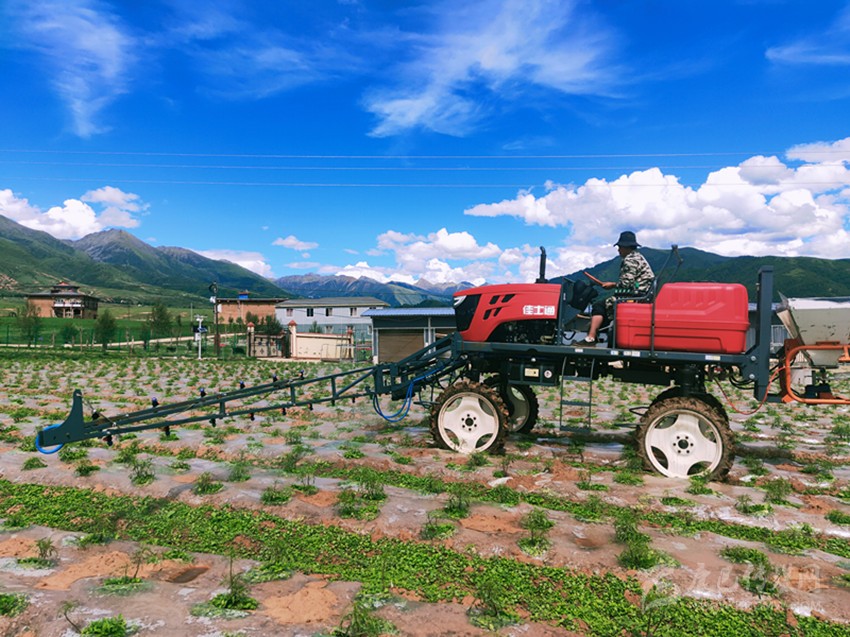 澤仁措務(wù)工之處是位于他家附近的白玉縣贈科現(xiàn)代農(nóng)業(yè)產(chǎn)業(yè)園區(qū)的萬畝核心種植基地,園區(qū)內(nèi)推廣流轉(zhuǎn)種植了藏菊花、藜麥、高原有機蔬菜、中藏藥材等共4500畝,園區(qū)主打種植藜麥、菊花等農(nóng)特產(chǎn)品,目前已實現(xiàn)規(guī)模化、連片化、機械化種植。種植基地為11個建檔立卡戶提供了長期固定崗位,園區(qū)建設(shè)通過土地流轉(zhuǎn)、村民就近務(wù)工等渠道,促進助農(nóng)增收多樣化,已兌現(xiàn)勞務(wù)費180余萬元。同時,贈科鄉(xiāng)的依里村、上比沙村、下比沙村通過土地流轉(zhuǎn),兩年多來憑借土地流轉(zhuǎn)獲得280余萬元的收益。
