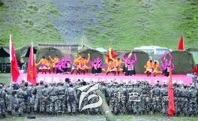 慰問演出在獨(dú)立營(yíng)戰(zhàn)士的拉歌聲中徐徐拉開帷幕,隨后,《北京的金山上》、《我的士兵兄弟》等一首首耳熟能詳?shù)母枨鹨簧涎??!稓g歌踏舞》、《盛世歡歌》等舞蹈,時(shí)而歡快跳躍,時(shí)而雄壯豪邁,歌曲《說句心里話》唱出了官兵的思念之情,也唱出了官兵們保家衛(wèi)國(guó)的心聲。整場(chǎng)演出在舞蹈《康巴人》中落下帷幕。