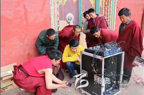“這是功放機(jī),這是DVD,這里是話筒插口,音量大小就在這里調(diào)節(jié)……”在德格縣溫拖鄉(xiāng)滿金寺的大殿外,僧人白扎正專心記錄著音響調(diào)音臺(tái)的使用方法,并用自己的手機(jī)全程錄下了整個(gè)操作流程。