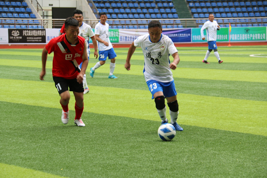 上午9時,道孚隊與巴塘隊的季軍爭奪戰(zhàn)正式開打,現(xiàn)場助威的觀眾熱情高漲,為各自支持的球隊吶喊助威。比賽一開始雙方球員迅速進入狀態(tài),在中場你來我往,足球在各位球員的腳下輾轉騰挪,經(jīng)過激烈比賽,上半場巴塘隊1:0暫時領先道孚隊。