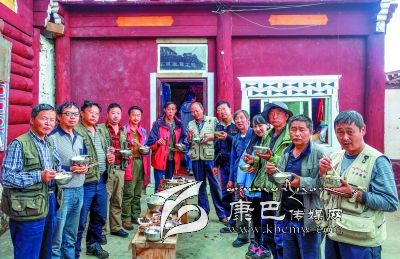 創(chuàng)作采風(fēng)期間,北部高原帶著泥土芬芳的生活深深地陶醉了隊員們,不知不覺,大家都成了早起晚歸,不辭艱辛的攝影人。每天早上4、5點起床是常事,夜幕四圍才吃晚飯更是習(xí)慣。團結(jié)、協(xié)作、樂于助人成為一種自覺的風(fēng)氣:60多歲的趙文光老師退休前曾任過康定縣宗教局和縣政法委領(lǐng)導(dǎo),他成為采風(fēng)隊最好的藏語翻譯;身板硬朗的他還被稱為“能攆獐子”的人。隊員辛沂外出拍照的時間最多,走的地方也很多,外出經(jīng)驗豐富,他精心準備的常用藥品熱心幫助了許多人。唐保安老師工作時常到農(nóng)村牧區(qū)調(diào)研,日積月累的基層生活知識成了采風(fēng)中不可多得的向?qū)?。被譽為攝影后期制作高手的胡庭輝每天義務(wù)為隊友考貝蓄存卡,講解攝影知識。王明陽、游建中更是身體力行地作表率,吃苦在前,當(dāng)向?qū)Фㄅ臄z點,心甘情愿地為隊友們服務(wù)。在宗塔草原民居接待站,高齡的代奇元老師和游建中不顧外出拍攝的勞累,主動熱心地親自下廚,為隊友們做出可口的飯菜。13日上午,藍色中巴在海拔3600公尺的老折山爆胎,州攝協(xié)主席,也是這次帶隊的郭昌平身先士卒,帶領(lǐng)會修車的胡庭輝、黃元康等不顧高山缺氧,積極幫司機換輪胎。離開宗塔草原最后一晚,原本安排此行唯一一次早上8點起床,讓隊員們好好休息一個早上,沒想到不到早上6點,全體隊員無一遺漏地都起床追光逐影拍照去了。來自四川民族學(xué)院的黃元康外出拍照返回,還忙著幫中巴車李師傅擦洗車廂。李師傅在創(chuàng)作采風(fēng)期間也深受感染,這天也沒在床上呆住。他對筆者說:這段時間和你們早晚相處,才知道攝影創(chuàng)作有多辛苦,你們的吃苦耐勞精神不得不讓人佩服。我今早上也睡不著呀,起來擦洗車廂,也想讓你們路途中乘坐得舒服一點……
