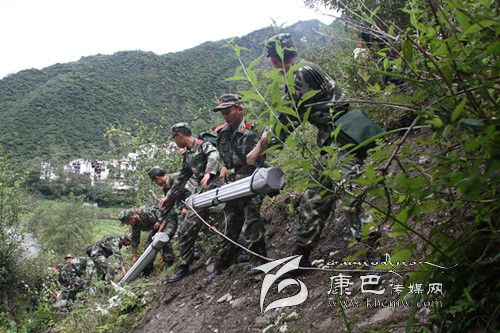 趕到災(zāi)區(qū),眼前已是一片狼藉,無情的泥漿已淹沒了大半個(gè)村莊。面對災(zāi)情,全體官兵來不及多想,立即運(yùn)送救災(zāi)帳篷到達(dá)距事發(fā)現(xiàn)場約4公里外的國如村。前往國如村的山路崎嶇,汽車無法通行,且隨時(shí)可能再次發(fā)生滑坡和泥石流,官兵們不顧危險(xiǎn),肩扛手抬沿山上陡峭的小路進(jìn)行運(yùn)送。途中還經(jīng)過一座僅一米寬的木板吊橋,此橋常年失修,走在上面左搖右晃,下面是湍急的河水,十分危險(xiǎn)。想到受災(zāi)群眾急切的眼神,官兵們冒著危險(xiǎn),小心翼翼地通過了小橋。