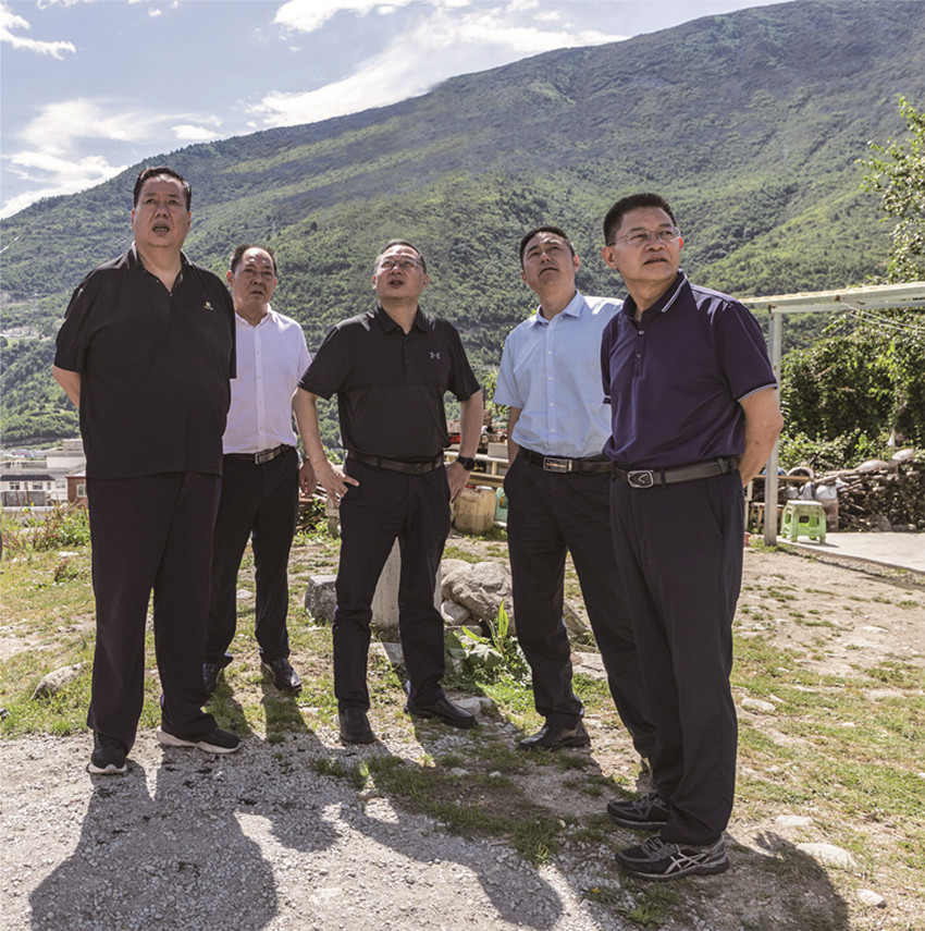 州政協(xié)主席雷建平陪同省政協(xié)副主席劉旭光在康定市駟馬橋黃家溝檢查林長制工作。