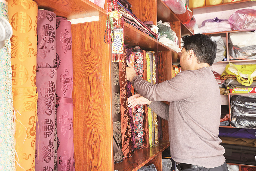“傳統(tǒng)藏裝需要手工制作,青年、中年、老年人的款式各不一樣,料子也很有講究,還有裝飾也很重要……”說起登龍服飾,扎西澤仁神采飛揚(yáng),不時(shí)發(fā)出爽朗的笑聲,他說,“一般簡(jiǎn)單的服裝制作僅需半天,復(fù)雜一些的要兩三天,價(jià)格從幾百元到幾千元不等?,F(xiàn)在縣城的商店生意很好,每天都能接到很多訂單,在登龍鄉(xiāng)的鋪?zhàn)咏唤o徒弟打理也完全沒有問題。”