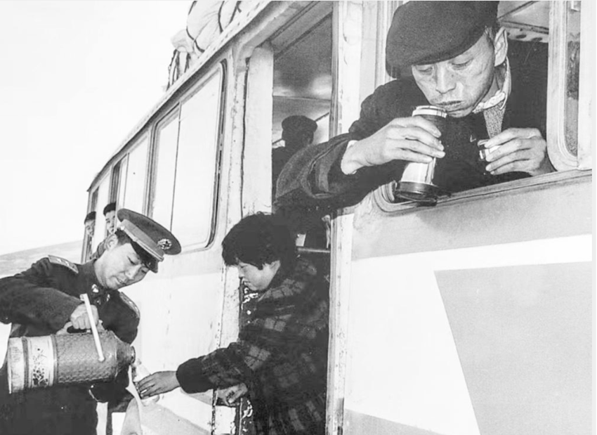 筆者看到在不遠處的展板上,幾張老照片訴說著茶水站的歷史:20世紀90年代初的川藏線上,人煙稀少,路過的司機不僅吃不上熱飯,有時連口熱水都喝不上。為此,該雷達站時任指導員劉寶森帶領官兵搭起簡易小木棚。有車輛經(jīng)過時,值班官兵就高高舉起暖瓶,示意司機停車喝水。