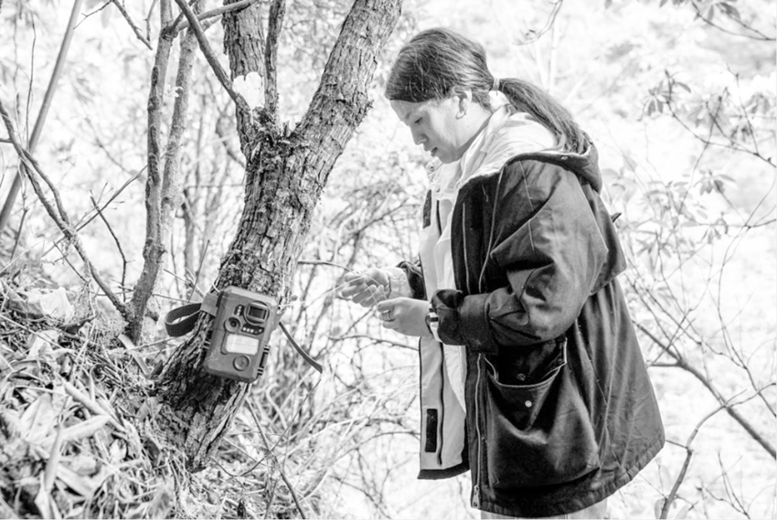 陳妍君安放紅外相機(jī)。 李強(qiáng) 攝
