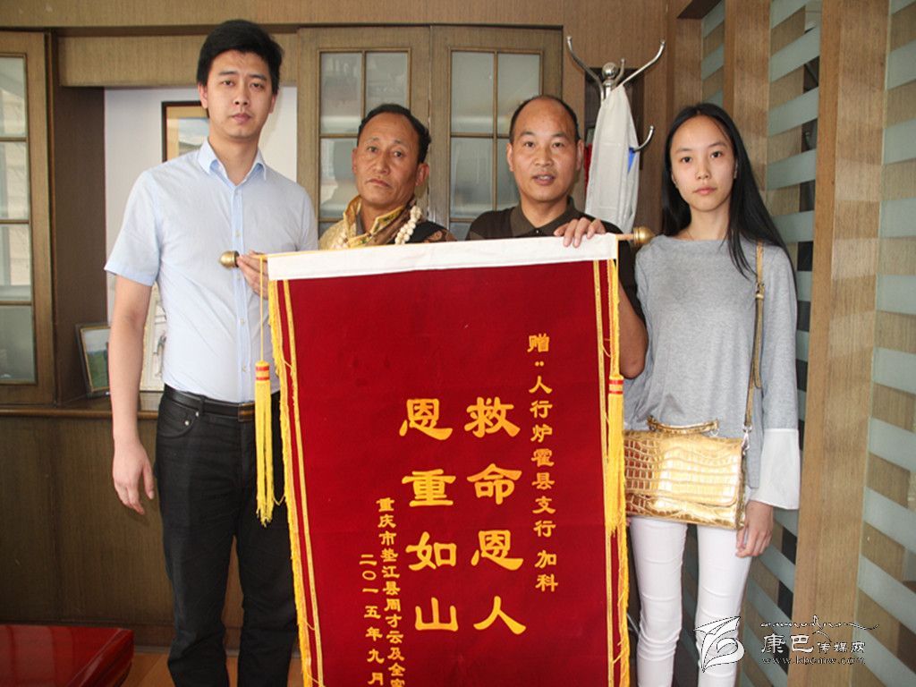 9月8日,重慶墊江人周才云攜女兒周瑩、女婿李超,從千里之外專程趕到人行爐霍縣支行向支行領(lǐng)導(dǎo)贈送“救命恩人,恩重如山”錦旗和感謝信。9月10日,爐霍縣委宣傳部在人行爐霍縣支行召開會議,對該行職工加科助人為樂的舉動進(jìn)行表彰。
