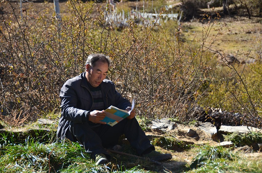 那一年,教室的過道里燃起熊熊的炭火,孩子們坐在溫暖的教室里,那郎朗的讀書聲久久縈繞在藏寨的上空。就這樣,復(fù)式班級(jí)的教學(xué)工作他一干就是十余年,后來,村里的兩位高中畢業(yè)生也走進(jìn)長納村小,長納村小的師資力量得到了補(bǔ)充。那一年,長納村小成立第一個(gè)教研組,阿布里擔(dān)任語文、數(shù)學(xué)教研組組長,在教研會(huì)議上,他將自己的教學(xué)經(jīng)驗(yàn)無私傳授給兩位代課教師。