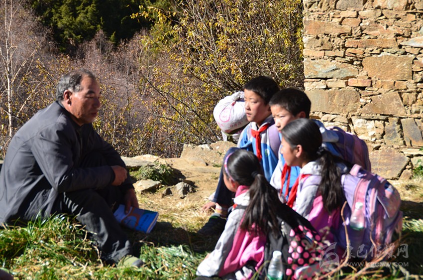 雖然代課教師的工資從當(dāng)年的每月200元漲到了現(xiàn)在每月800元,然而在以市場(chǎng)經(jīng)濟(jì)為主體的社會(huì)里,800元工資的人群屬于低收入群體。盡管如此,阿布里老師依然早出晚歸,在那條他閉上眼都能走的小徑上來回奔波,依舊嘔心瀝血教書育人,那郎朗的讀書聲在藏寨的上空久久回蕩。每天上學(xué)放學(xué)路上,孩童們?cè)诎⒉祭锢蠋煹膸ьI(lǐng)下,在小徑上排著整齊的隊(duì)伍,撒下一路歌聲一路歡笑。