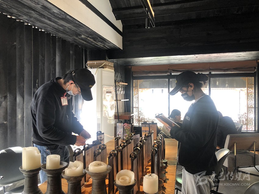 青棵餐吧的店員正在準(zhǔn)備情人節(jié)套餐宣傳臺(tái)卡。