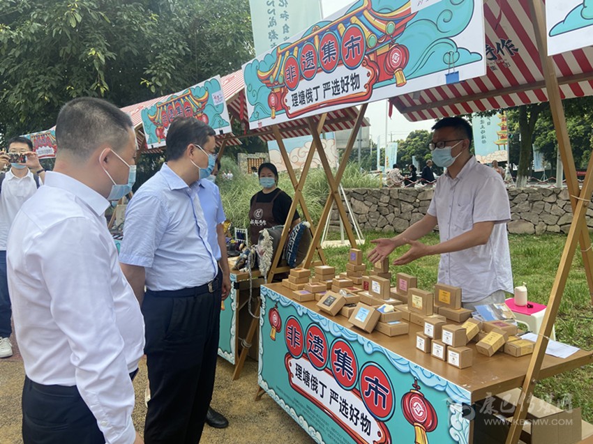 羅遵國(guó)在成都市2022年“文化和自然遺產(chǎn)日”非遺主場(chǎng)活動(dòng)中推銷(xiāo)俄丁村特色農(nóng)副產(chǎn)品。