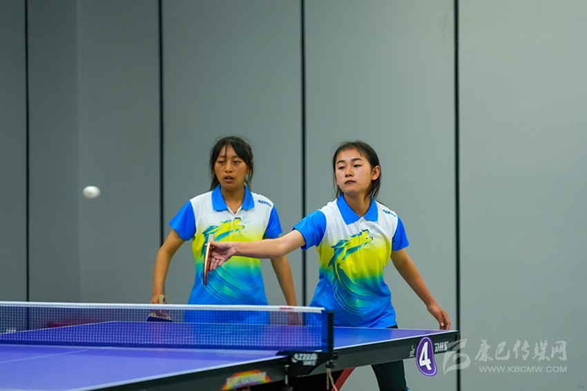 乒乓球女子雙打賽現場。