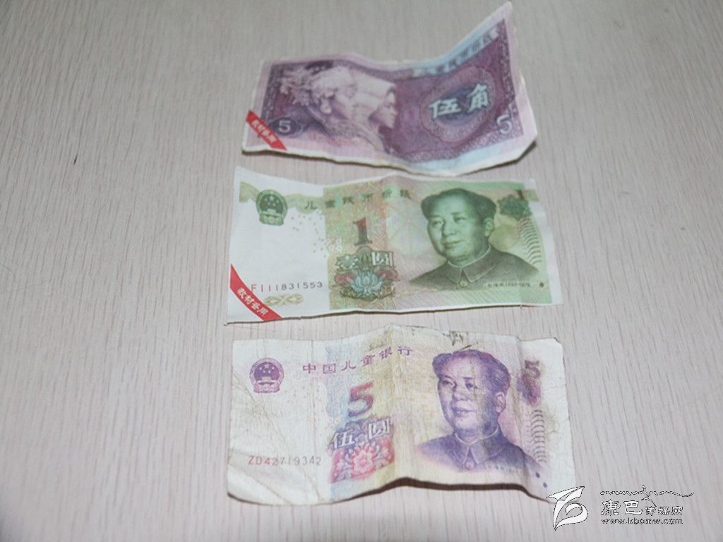 一元紙幣被撕開多次使用