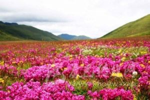 木雅圣地景區(qū)坐落于康定折多山西側(cè)的“木雅辛康”,是一座以民俗風(fēng)情與自然風(fēng)光相結(jié)合的,以體現(xiàn)藏族木雅文化為主題的專題旅游區(qū)。擁有雪山、草原、花海、河流、湖泊和木雅藏族民俗文化等眾多旅游景觀,共有5個主要景點,“花海尋蹤”是當(dāng)年木雅公主很愛游玩之地,也是整個景區(qū)花開得很早很茂盛的地方?!拌笠羲透!笔悄狙诺貐^(qū)享有盛名的藏傳佛教寺廟?!疤旖缒粮琛笔悄狙艊鴤鹘y(tǒng)的冬季放牧之地,這里牧草極為豐富。“佛佑木雅”是一個用經(jīng)幡制作而成的釋迦牟尼佛像?!叭悍鍑痢笔亲o衛(wèi)木雅國的一道天然屏障。