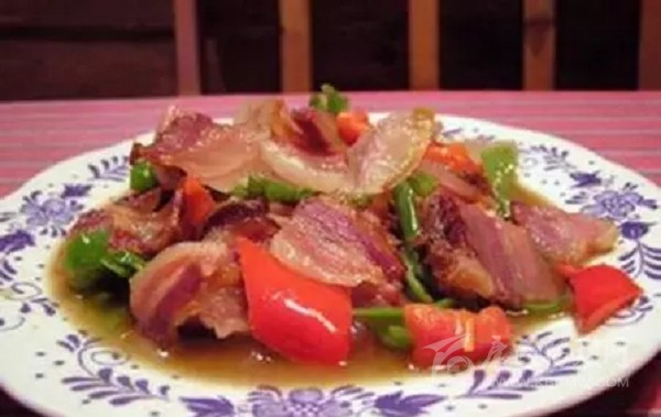 嘉 絨語稱“大古兒”,與香豬腿一樣,豬膘是丹巴的土特產(chǎn)之一。境內(nèi)居住在高山半高山一帶的藏羌群眾家家做豬膘。豬膘就是豬的肥膘做成的,一頭豬砍去四個“肘 肋”肉,去頭和項圈后,余下的從背梁上剖開,做成兩扇豬膘,在一鍋開水里煮成半熟,取出后,用木棍將其撐開弄直,在露天里凍兩天晚上,待基本成型后掛曬晾干。一般每戶人家在藏房的二樓有固定的房間放肉,在房間內(nèi)搭設(shè)一個架子,把豬膘平放在架子上,一扇重一扇。家庭富足的每年能積存一定數(shù)量的豬膘,幾年后, 已堆滿一個房間。豬膘的食用方法各個地方有所不同,境內(nèi)邊耳鄉(xiāng)一帶一般吃生豬膘,每當(dāng)寨子里有人家蓋房、辦喜事,會提前做很多火燒子饃饃,切很多塊狀的豬膘;當(dāng)天幫忙的一人發(fā)一個火燒子饃饃、一塊豬膘肉;豬膘一般不去毛,食用的時候在滾燙的茶水里浸泡一會兒,然后用刀將皮毛去掉,然后和著饃饃食用。小金溝 一帶有用豬膘做“墩子”肉(又稱“坨坨肉”)的習(xí)俗,“墩子”肉是“九大碗”中的主菜,其做法是把豬膘切成塊,放上佐料,用文火燉耙,然后一碗一碗舀上桌食用,“登子”肉燉的時間越長就越香。境內(nèi)其他一些地方普遍把豬膘煮熟切成片和著饃饃食用。