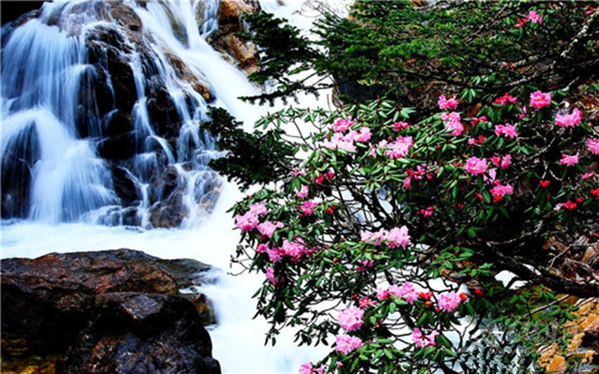 杜鵑峽東連七色海,西接野人海,峽谷長(zhǎng)6公里。峽谷中,溪澗時(shí)而奔流,時(shí)而舒緩,飛珠濺玉,溪岸兩邊林木蔥郁,尤以原始杜鵑林引人注目。這里的杜鵑花千姿百態(tài),艷麗多彩。有的花樹高達(dá)數(shù)丈,猶如臨空欲飛的散花仙女;有的矮不盈尺,恰如鋪展的裙裾;有的高居山崖,迎風(fēng)搖曳,頻頻向來(lái)賓致意;有的豎立溝谷,亭亭玉立,向游客含羞行禮;有的花大如海碗,有的花小似紐扣;紅、黃、藍(lán)、白、紫、似珊瑚,賽珍珠,一團(tuán)團(tuán),一簇簇,滿山是花的世界,滿峽是花的海洋,她匯聚了杜鵑花族中68個(gè)品種,從4月中旬先后開(kāi)放至7月,花期長(zhǎng)達(dá)4個(gè)月。